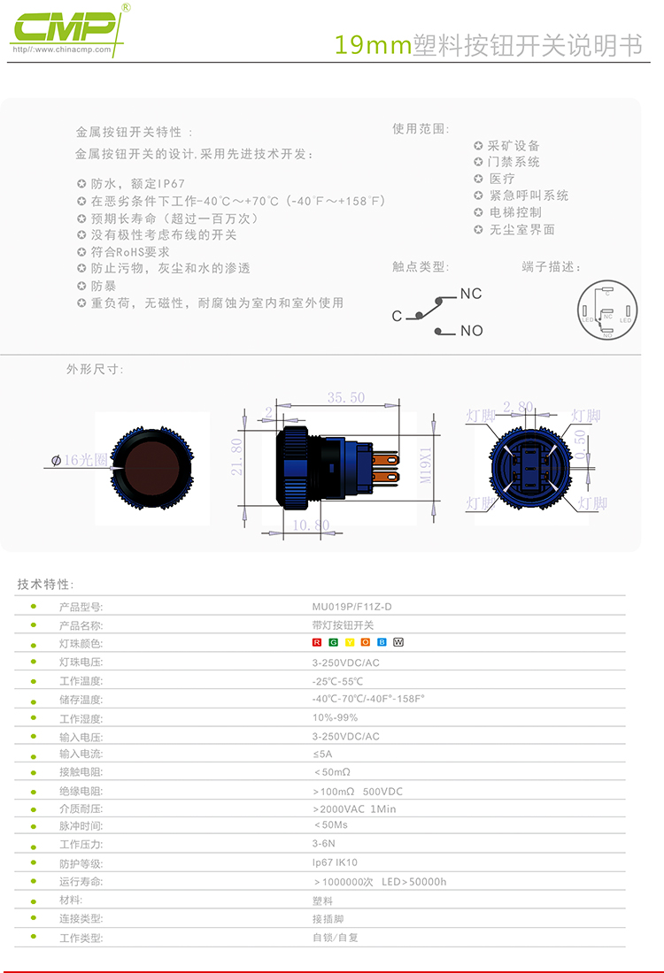 19MM塑料按钮开关